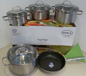 RÃsle Elegance Topfset 4-tlg. Seine stilvolle Optik in matt gebürstetem Design . Rösle Topfset Preise vergleichen und günstig kaufen bei idealo. Das Rösle Elegance Topfset ist ein spülmaschinenfestes, Kochgeschirr-Set aus Edelstahl, welches für alle Herdarten, inklusive Induktion, . Alle Deckel sind mit einem Silikonrand ausgestattet, sodass der jeweilige .